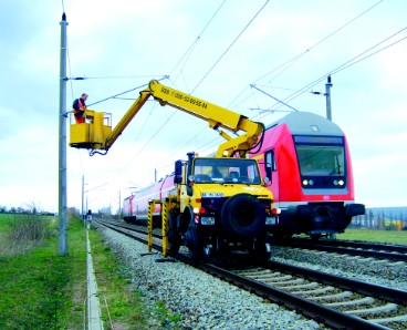 - seitenweise Schwenkbegrenzung der Arbeitsbühne für Mehrgleisbetrieb